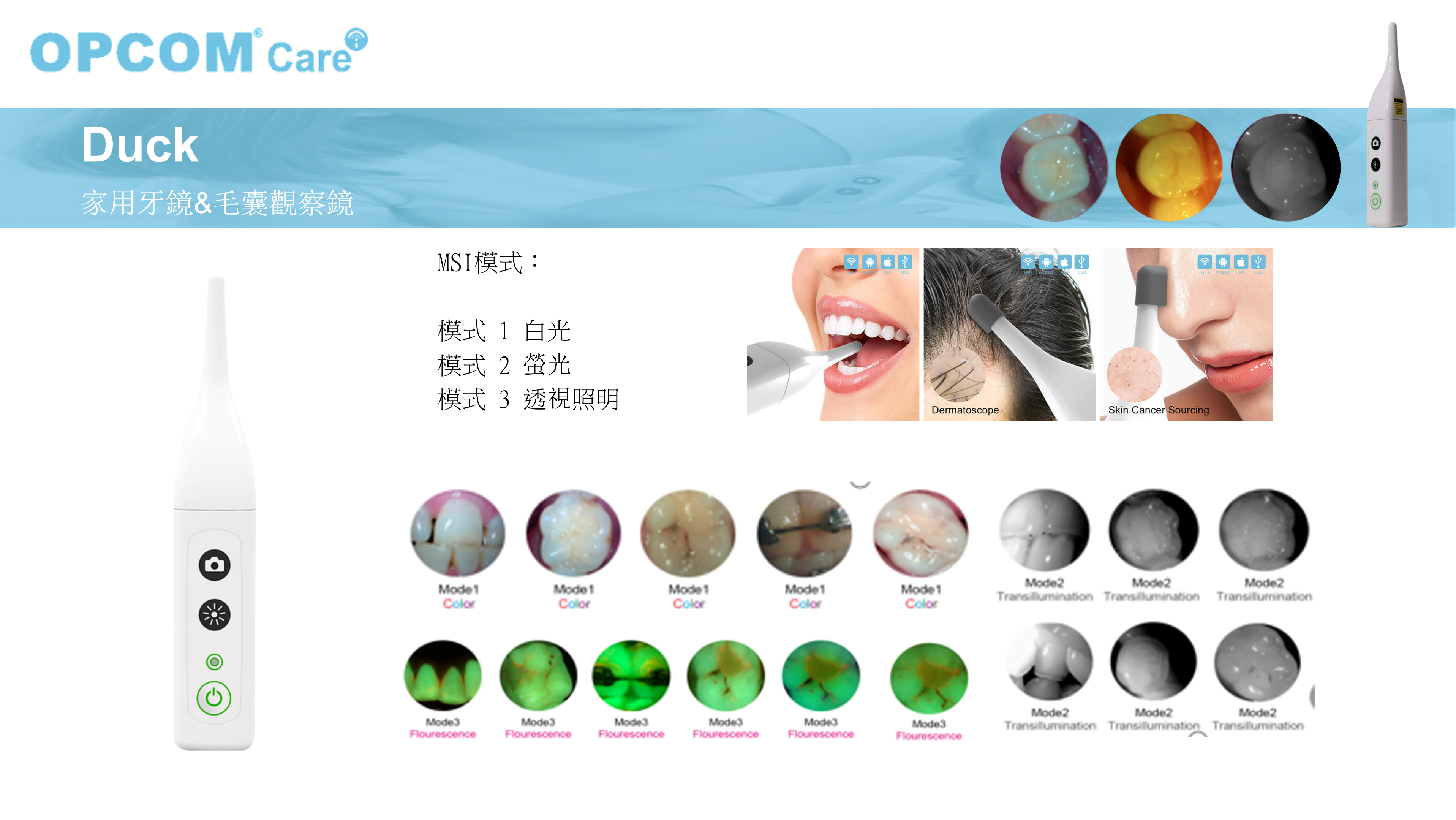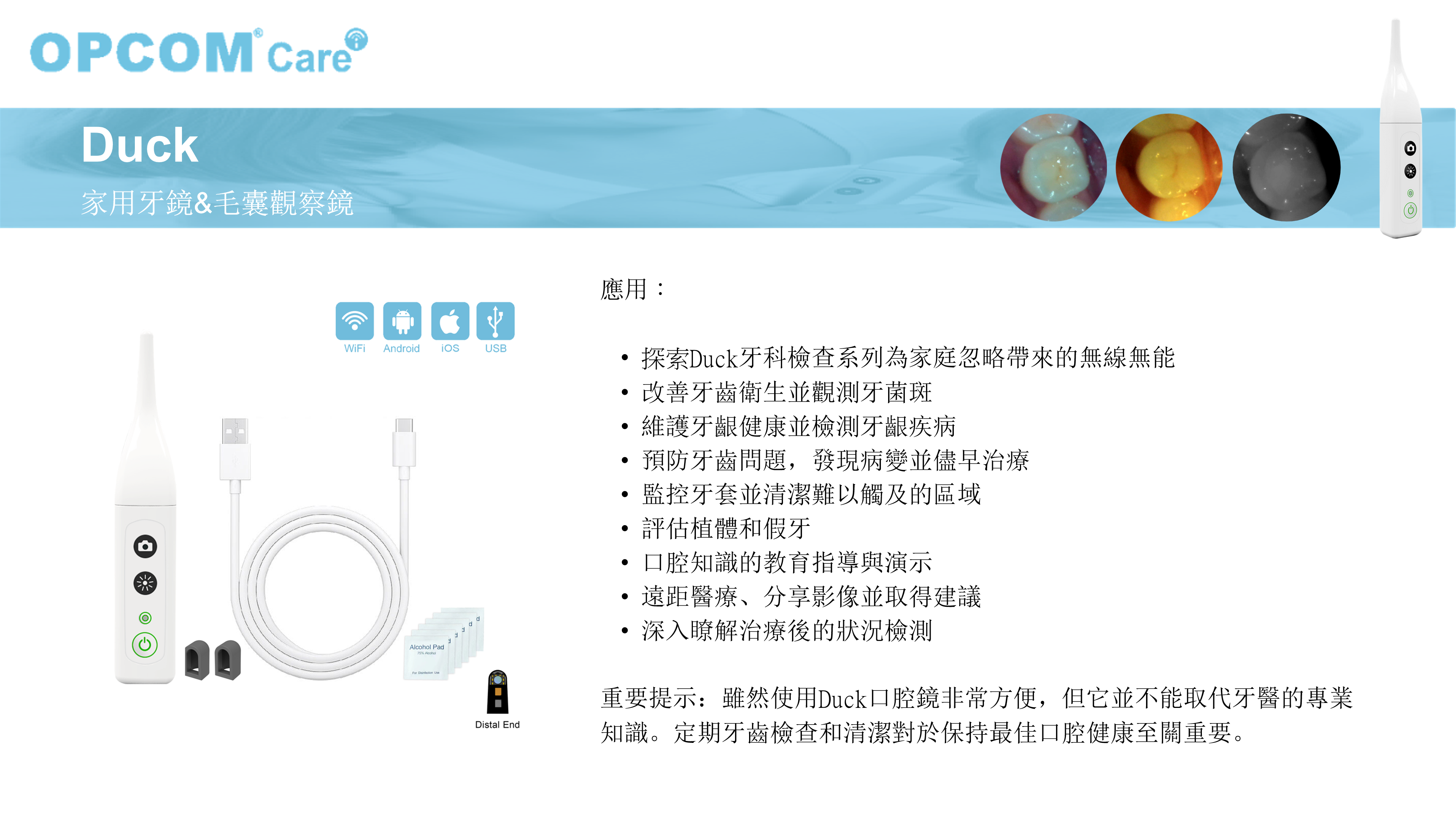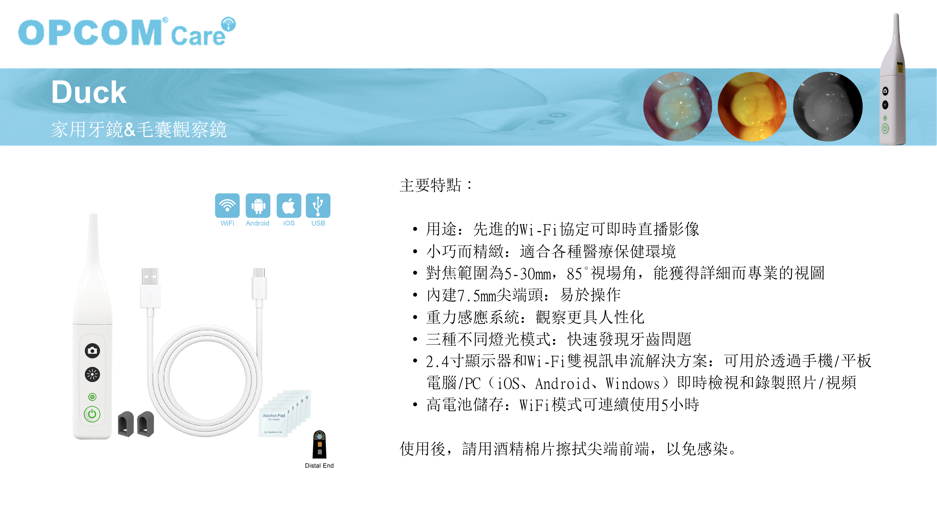 鴨子來診,口腔無隱 多光譜照明(MSI)技術,可觀察表面蛀牙、牙菌斑、和內部琺瑯質狀態,加矽膠喇叭罩可觀察痘痘、毛孔等膚況,未來結合AI建議可提供多方位精準照護措施。即時影像串流設計,提升遠端照護品質。配備5mm至30mm的近工作距離和85度視場角,專為口腔等狹窄空間提供專業細緻的視圖。 NTD.3480 NTD.2980 購買連結: