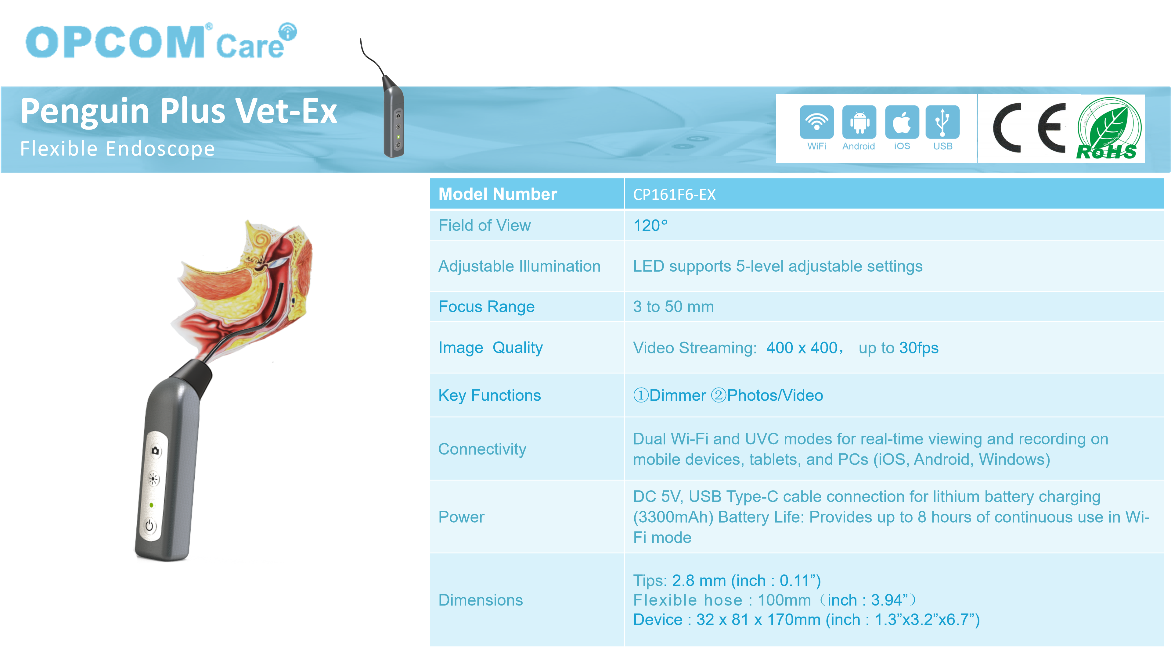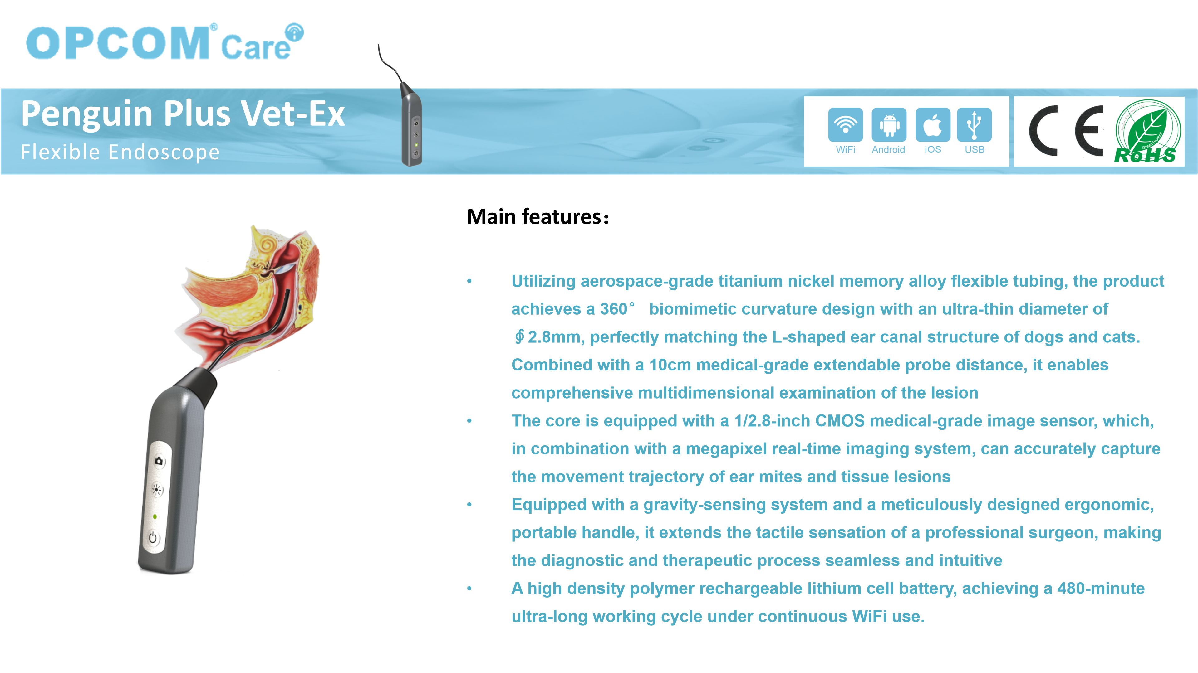 Specially designed for cat and dog ear examination, with a diameter of Ø 2.8mm ultra-fine hose, it is easier to enter the deep part of the ear canal, reducing discomfort. The tip integrates four high brightness LEDs to ensure a clear and bright field of view in the observation area. The aviation grade titanium nickel memory alloy flexible catheter, with a 360 ° biomimetic curvature design, perfectly fits the L-shaped ear canal structure of dogs and cats, and can be used with a 10cm extended probe to explore lesions in all dimensions. Built in high battery storage, with a continuous usage time of over 8 hours, suitable for various medical environments.Purchase Now: